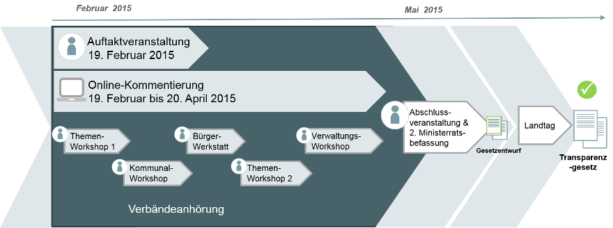 Neben der Online-Beteiligung, die vom 19. Februar bis zum 20. April 2015 Gelegenheit bot, den Gesetzentwurf zu kommentieren und zu bewerten, fanden folgende Veranstaltungen statt: